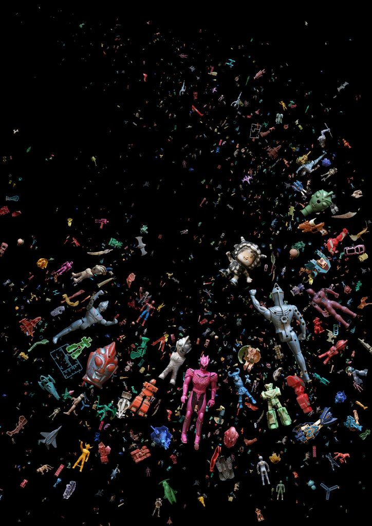 The plastics photographed for this series have been collected from beaches around the world. They represent a global collection of debris that demonstrates the mass of plastic in our seas.